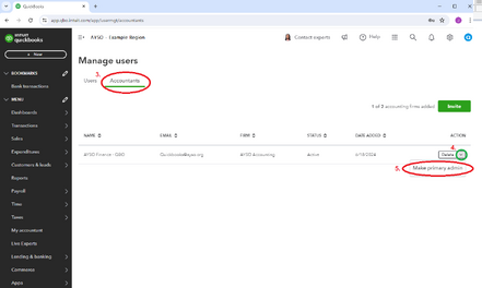 All QBO Accounts provided by National are being asked to transition the role of Primary Admin to the National Office. This will add a layer of security for succession planning without compromising your access.