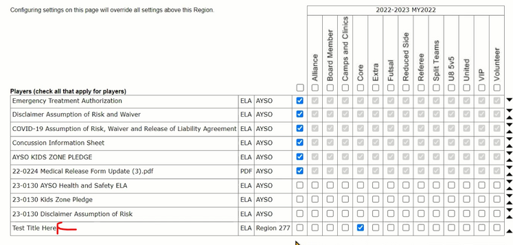 A Region Level ELA can be added in the Association Platform and will be shown in Sports Connect during registration.