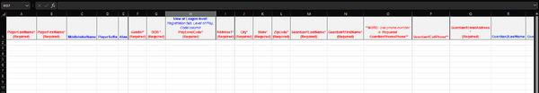 Once registration for the season has closed, Region to complete the SPORTS CONNECT PLAYER UPLOAD TEMPLATE.  Email completed template to [[2]].  Region will be invoiced for number of players submitted.  Only submitted players are insured.