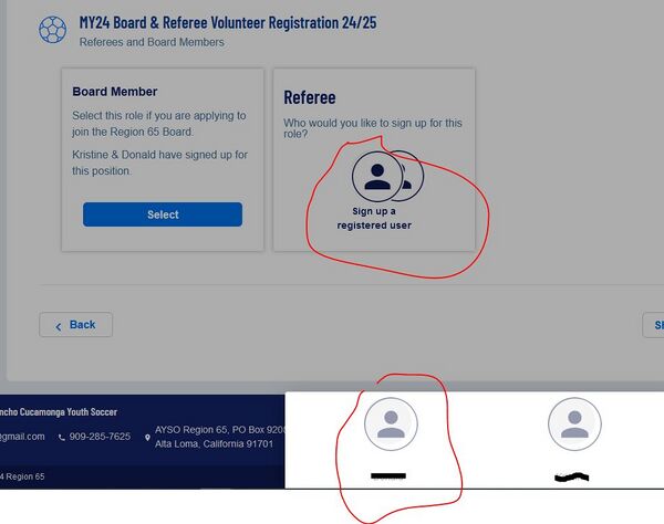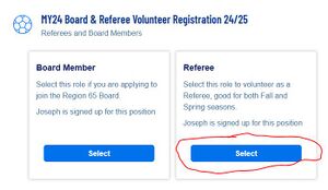 6. Find the Box for Referee or Youth Referee, click “Select”, then