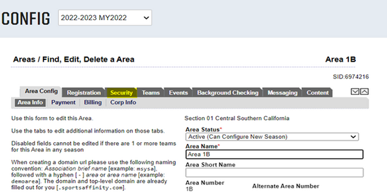 5. Click on Security to update the Area Board.