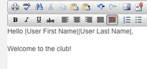 8. One way to make your email more personal is to add a Merge Tags. This auto-populates certain information when the email is sent out, like the name of the user it is sent to. You will see a drop-down option in the edit toolbar.