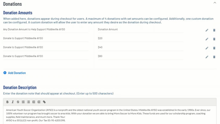 - These notes appear onscreen when account holders are selecting which program and division to register their participants in.