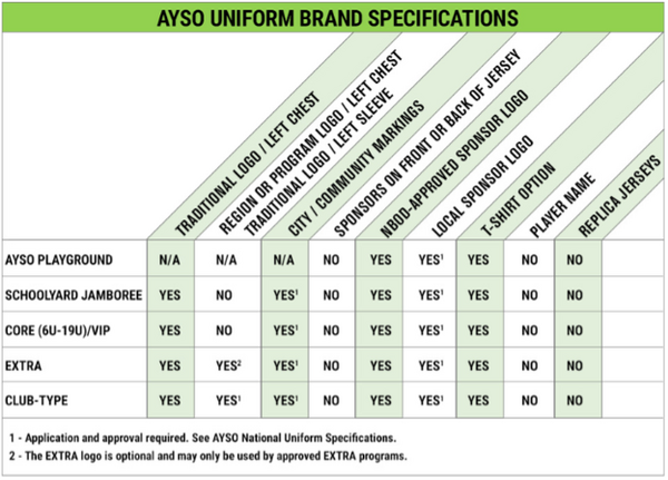 10. AYSO’s Official Uniform Sponsors will be the preferred provider of uniforms.