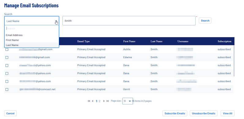 4. Once you are on the ‘Manage Email Subscription’ page, you will be able to search for the volunteer that needs to be unsubscribed.