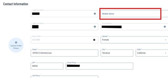 4. Add your FULL legal middle name. Please do not add an initial only.
