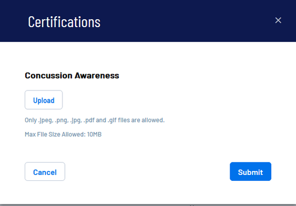If there is any trouble uploading and/or uploading a certificate, please email support@ayso.org.