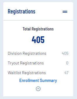 This is the Enrollment Summary Report. This shows you how many players are on the waitlist for each division.
